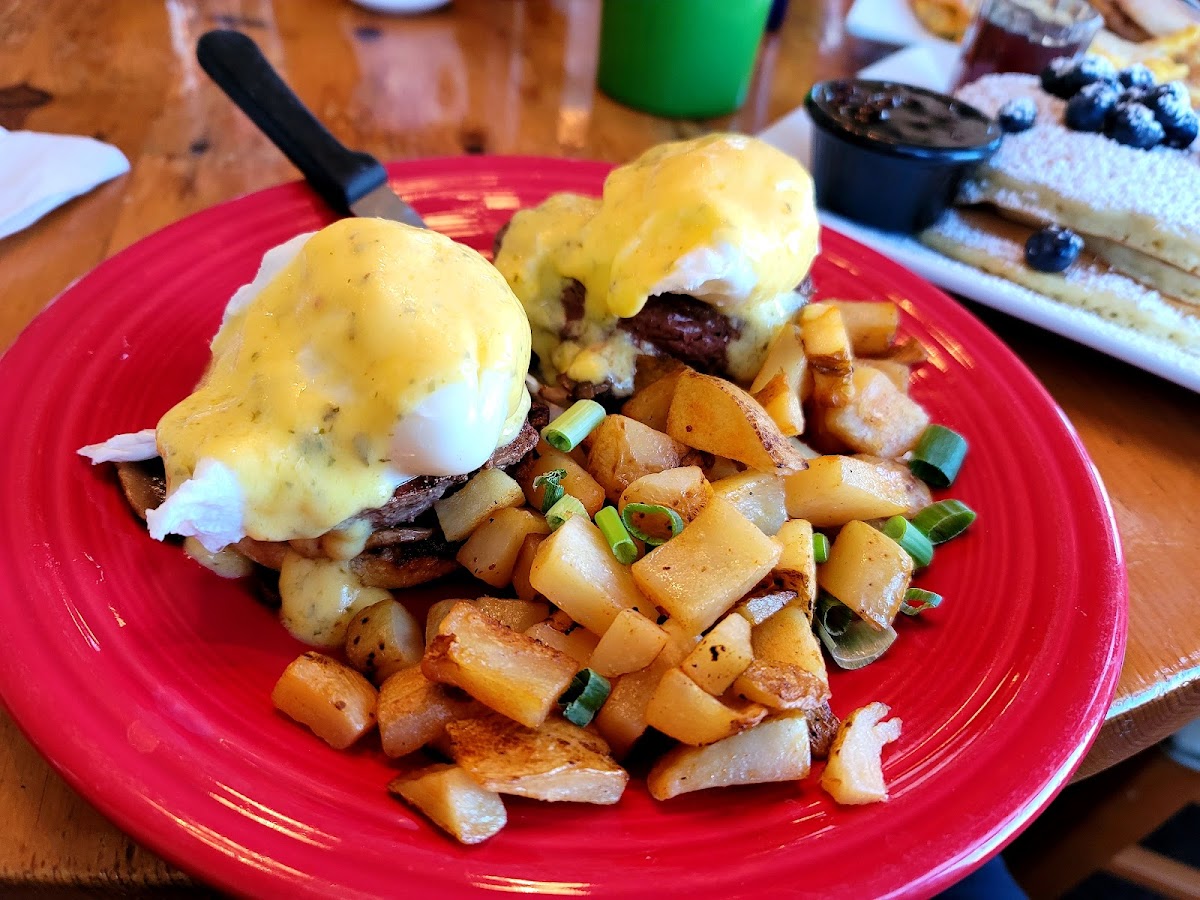 The menu at Benedicts Eggs & More features a delightful variety of dishes that will satisfy anyone, no matter their preference. The name itself gives you a pretty good idea of what to expect-eggs in every form imaginable. From classic Eggs Benedict to creative twists on traditional breakfast favorites, every dish is crafted with care. The signature Eggs Benedict is a standout, with perfectly poached eggs, rich hollandaise sauce, and a choice of crispy bacon or savory sausage-served with a side of golden, crispy potatoes.