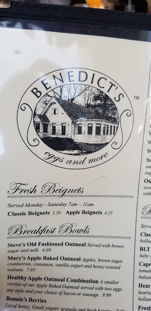 Three Apple Beignets, dusted with powdered sugar and caramel. Available until 11 a.m. Not available on Sunday