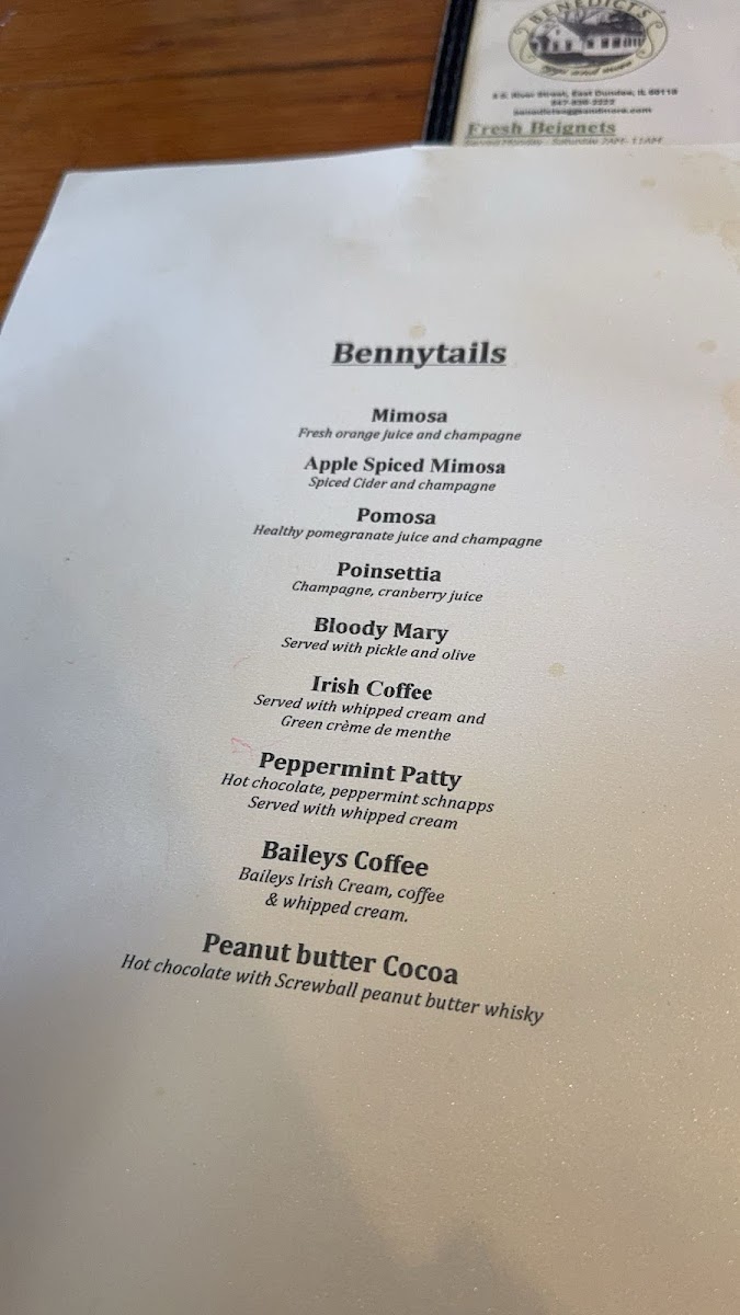 Two 3 oz filet mignons, poached eggs Bearnaise sauce