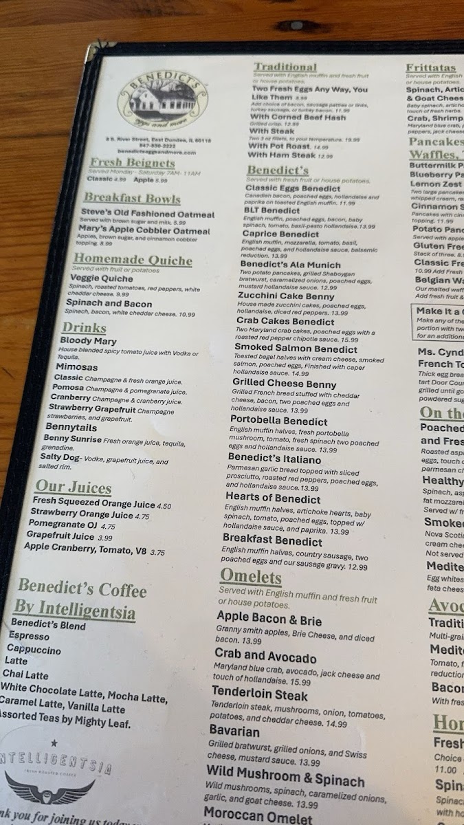 English muffin, artichoke hearts, baby spinach, tomato, poached eggs and hollandaise sauce